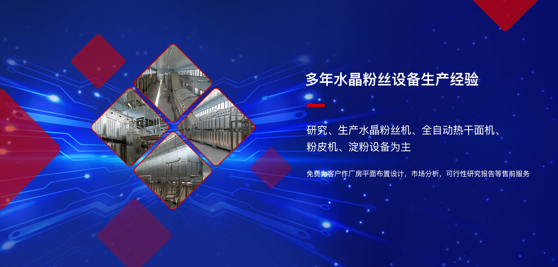 開封市晟豐機械設備有限公司是以研究、生產水晶粉絲機、全自動熱干面機、粉皮機、淀粉設備為主的企業,具有多年水晶粉絲設備的生產經驗。公司占地面積25畝、擁有員工58人,其中職稱9人,有15名安裝人員**負責安裝與調試。 我公司所生產水晶粉絲等各種設備,免費為客戶作廠房平面布置設計,市場分析,可行性研究報告等售前服務。設備自調試結束之日起一年內保修,終身服務,并可與公司同步升級設備,長期供應設備上的各種配件(收取成本費)等售后服務。并對老設備有償進行升級改造。 公司始終以‘人無我有,人...